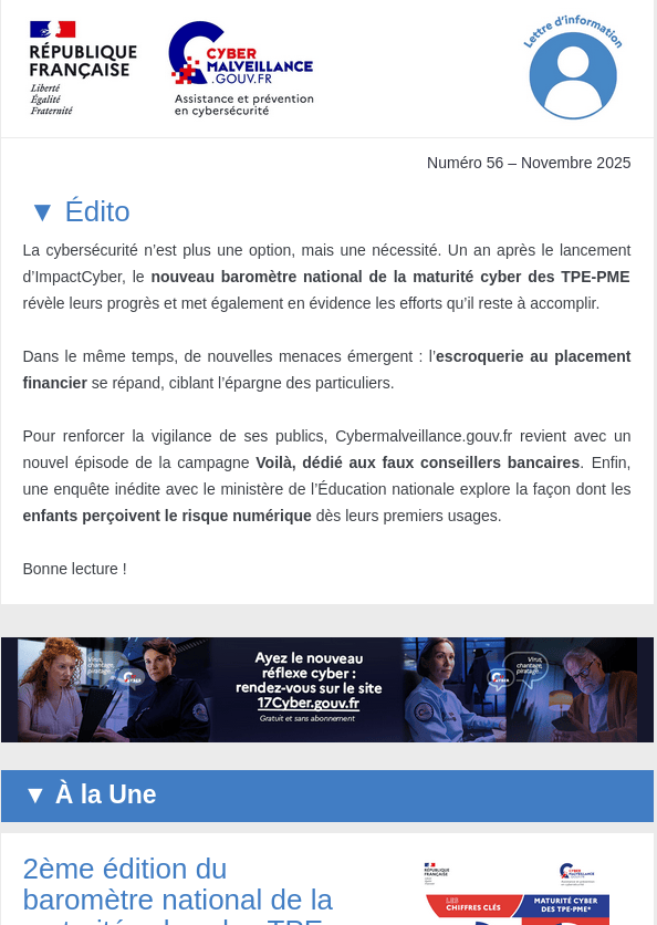 - Lettre d’information n°55 – Octobre 2025 : la campagne de sensibilisation « Histoire de Cyber »