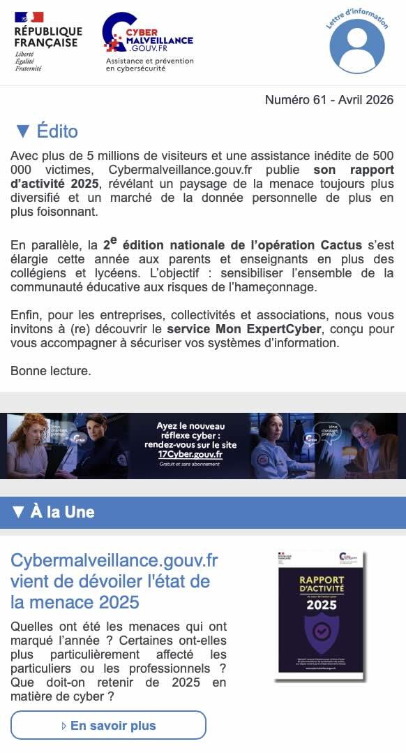- Lettre d’information n°56 – Novembre 2025 : coup d’envoi du Cybermois 2025